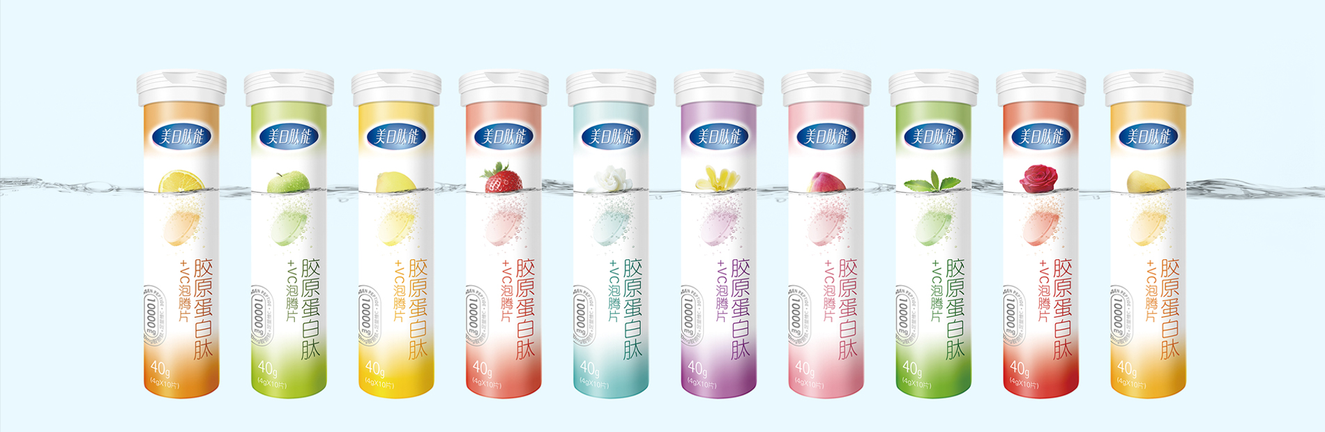 泡騰片放入水中迅速升騰起無數(shù)氣泡的一瞬間,美妙化作唯美的味道,讓身體里每個細(xì)胞迅速蘇醒,提供一天能量所需。是包裝創(chuàng)意的主題,讓消費(fèi)者直觀的感受到產(chǎn)品的神奇力量,彰顯品牌的青春與活力。系列產(chǎn)品在終端成列中形成靚麗的視覺聚焦點(diǎn),同時為后期的宣傳片拍攝提供了創(chuàng)意腳本。